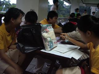 Today is another fun-filled day (it seems that we had 5 hours of PE)...we had our faces painted, wore our Apollo tee and tied yellow sashes around our hands, wrists, necks and wherever you can tie on...but before I go on about the Games Day, just tell you a bit on the things I saw before assembly. As I walked into school with my fellow 157 bus pals, I saw this: To tell you the truth, I wasn't as shock as I was about 2 months ago, when my mind would scream, "OMG...What on earth are they doing!!!!!" Cos this has already become a common sight at our class bench. As usual, the No.1 Most Hardworking Girl in the Universe, Miss Choo Wenrui, was doing maths tutorial 3B (how many of you even touched tutorial 3A?) Look, she's so absorbed that she doesn't even know I'm taking a picture of her...nvm...continue whatever you're doing, dear Wenrui, this is your trademark, our model. :)